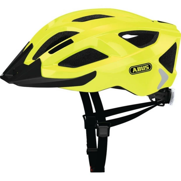 Le casque Abus Aduro 2.0 est un casque sportif à usage quotidien. Très léger, 325g seulement pour la taille L, il offre à la fois confort et sécurité à son porteur. Conçu avec la technologie In-Mold, permettant une liaison durable de la coque extérieure et de la mousse expansée antichoc intérieure, il protège bien la tête. Ses 14 entrées et 3 sorties d’air reliées entre elles par des canaux apportent une ventilation optimale. Pour plus de sécurité, il est muni d’une LED à l’arrière et de larges bandes réfléchissantes. Sa visière est amovible, tout comme son rembourrage lavable.