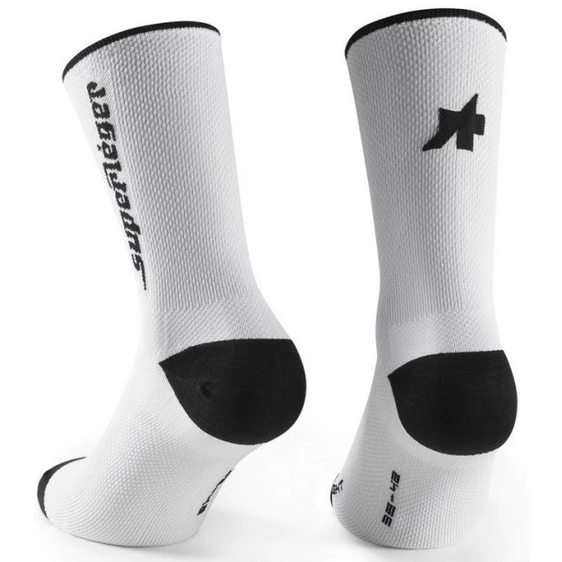 Les chaussettes Assos RS Superleger sont idéales aussi bien pour les sessions d’entraînement en intérieur que pour les courses en extérieur lors des journées les plus chaudes. Elles sont les chaussettes Assos les plus légères à ce jour, ne pesant que 15 grammes chacune. Ces chaussettes de compétition offrent la meilleure respirabilité possible pour les coureurs professionnels et ceux qui recherchent une vitesse maximale, car elles sont 20% plus légères que les RSR tout en offrant une protection maximale. La zone du talon et des orteils est fabriquée en microfibre bactériostatique pour plus de confort et de contrôle des mauvaises odeurs. Pour la partie supérieure de la tige, un élastique amélioré a été utilisé pour assurer une transition presque imperceptible entre le tissu et la peau.