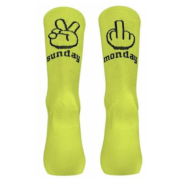 Les chaussettes Northwave Sunday-Monday sont idéales pour les cyclistes adorant les dimanches mais pas les lundis. Elles sont confectionnées dans un fil Soft Air, très doux au toucher, doté d’une structure multifilament extensible, qui évacue efficacement l’humidité. Le tissage compact sur le devant assure une plus grande résistance à l’usure, tandis que la maille ouverte sur le dos augmente la respirablité. De plus, leur style résolument irrévérencieux ne vous fera pas passer inaperçu !