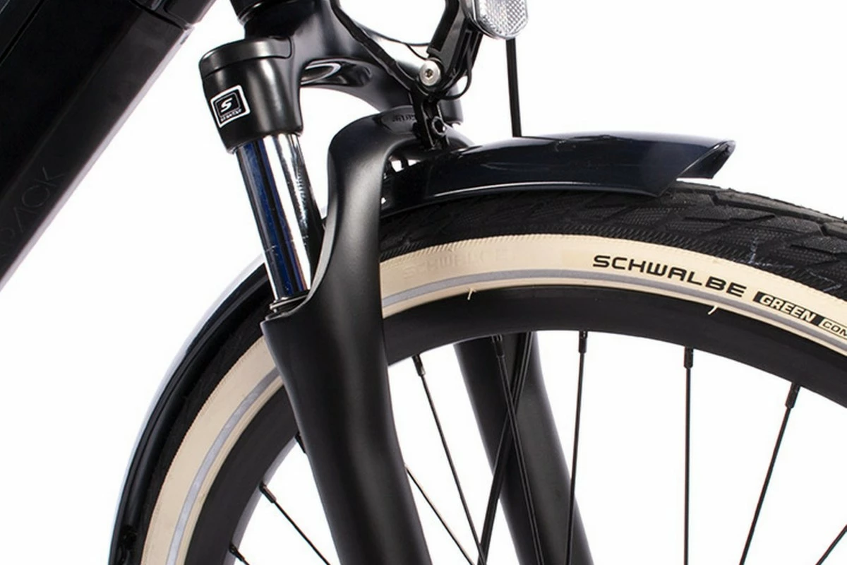 En termes de confort l’Iswan City Boost 6.1 est équipé d’une fourche suspendue suntour offrant un débattement de 50 mm, d’une selle Royal Lookin avec gel permettant un confort renforcé et d’une tige de selle Satori réglable et suspendue.