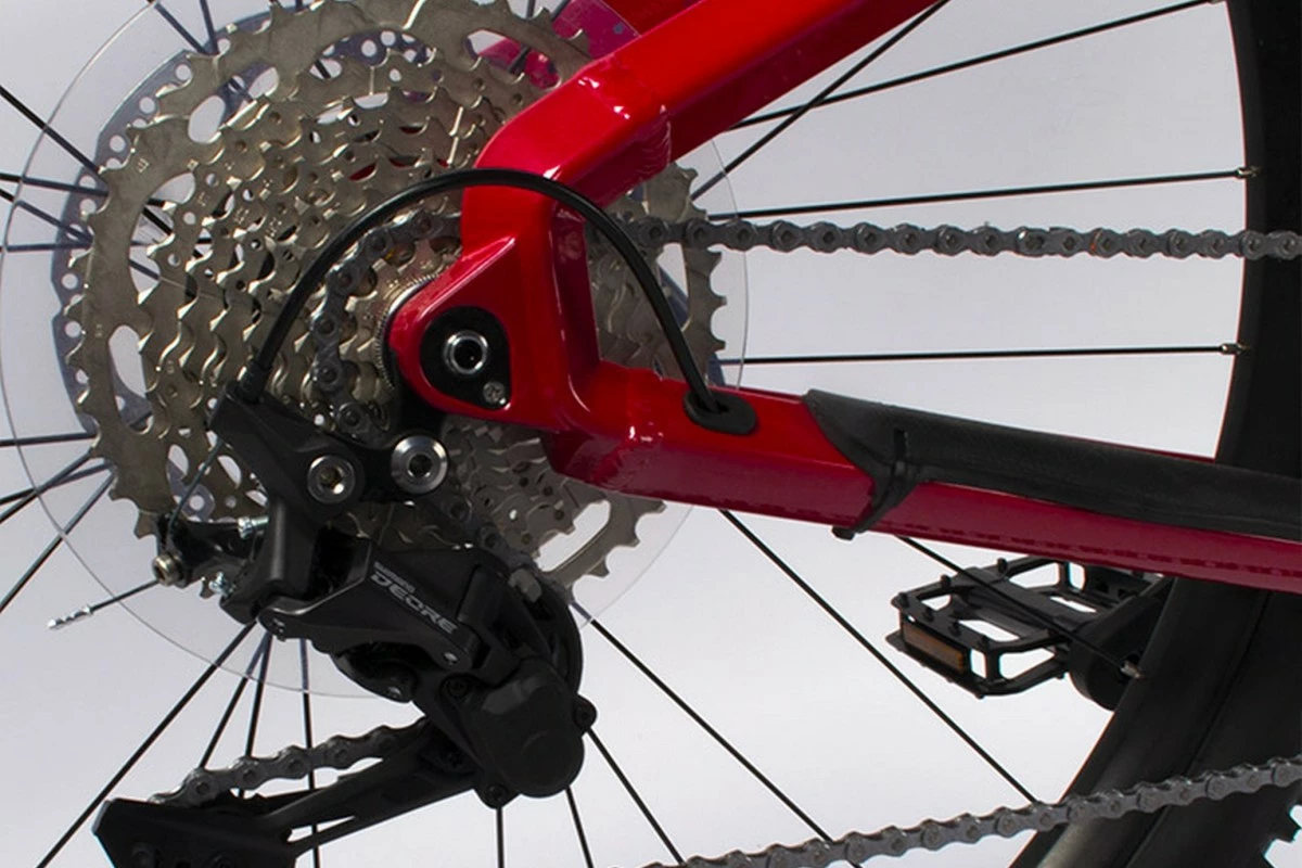 Monté avec un dérailleur Shimano Deore 10 vitesses et des freins à disques hydrauliques Shimano MT400 180mm La conduite