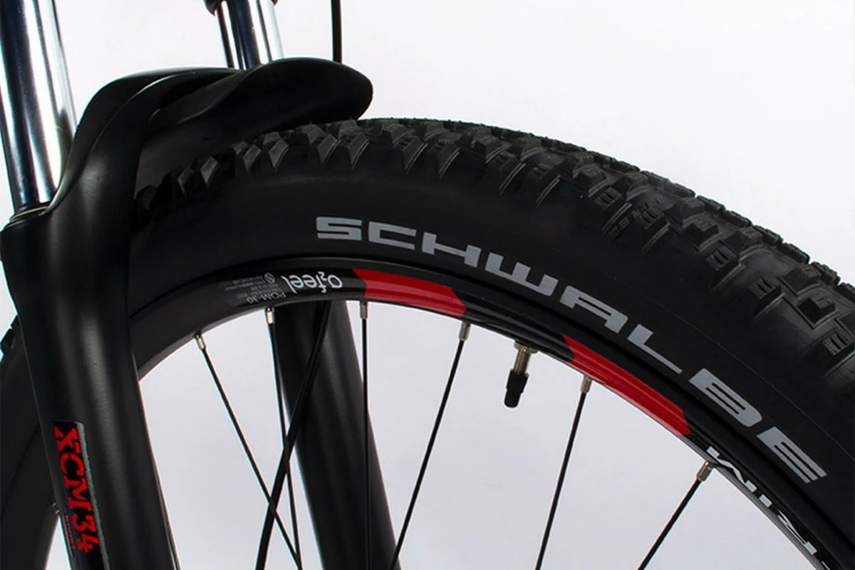 Niveau confort le Karma XC Boost est monté avec une fourche Suntour XCM34 Boost offrant un débattement de 120mm et deux dimensions de pneu différentes selon la taille ( 27.5 x 2.4 pour taille S et 29 x 2.4 pour taille M-L )