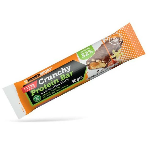 Les barres énergétiques NamedSport Crunchy Proteinbar sont de délicieuses barres protéinées à 32 %. L’enrobage de chocolat croquant renferme un fourrage moelleux à base d’un mélange de protéines de soja isolées et de protéines de lait concentrées, à valeur biologique élevée, aidant au maintien de la masse musculaire. Elles se consomment avant et après l’effort.