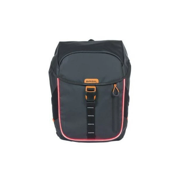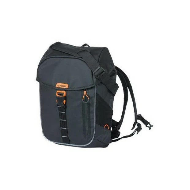 Le sac à dos Basil Miles Tarpaulin Nordlicht vous suivra dans tous vos déplacements à vélo, qu’ils soient domicile-travail ou pour aller en cours. Polyvalent, ce sac à dos sportif se fixe aisément aux porte-bagages grâce au système Hook-On. Très confortable, le Miles Tarpaulin Nordlicht possède un dos et des bretelles rembourrés. Fabriqué en bâche imperméable noire mate, ce sac étanche se ferme par enroulement et possède des coutures scellée, lui permettant de résister à une forte averse. Les différents compartiments accueilleront vos effets personnels, tels que smartphone, livres, stylos, etc..